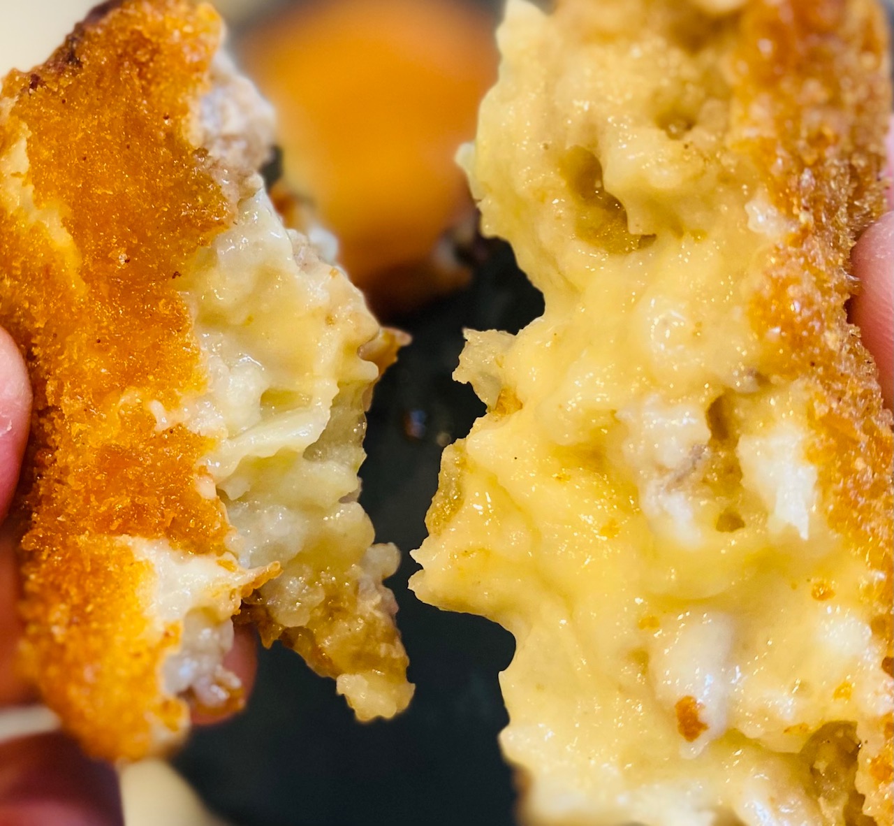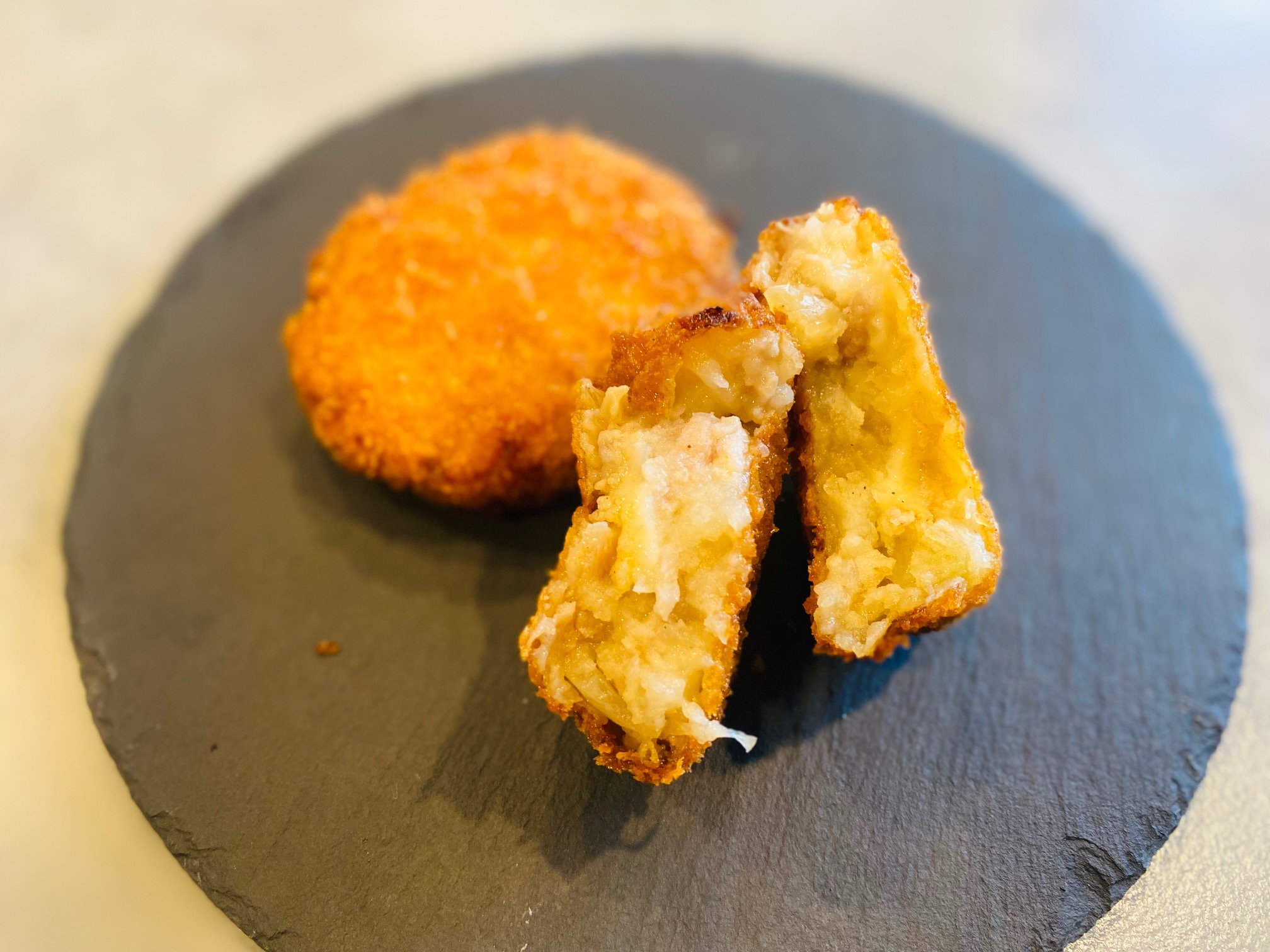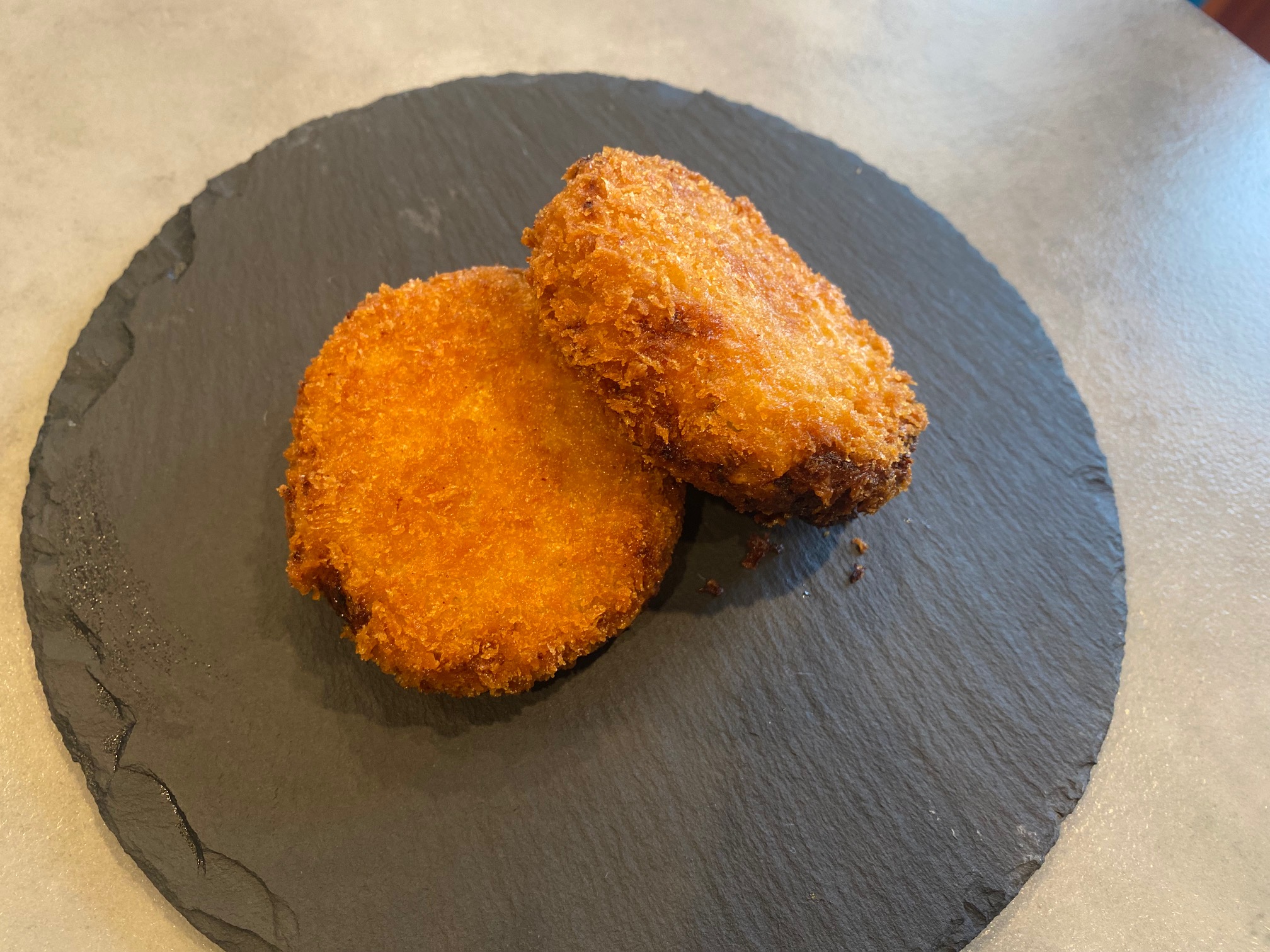 天狗乃肉林本店オリジナル、たっぷりの若鶏とチーズが入った熱々コロッケ!